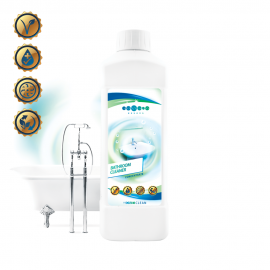 Καθαριστικό Για Το ΜπάνιοΠεριεχόμενο : 1LΥπέρσυμπυκνωμένο απορρυπαντικό για επιφάνειες μπάνιου με μέγιστη ικανότητα καθαρισμού και ευχάριστο άρωμα φρεσκάδας.Βιοδιασπόμενο.Αφαιρεί αποτελεσματικά και με ασφάλεια τη βρωμιά από όλες τις επιφάνειες μ..